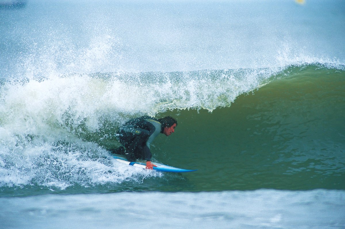 Goed laag-tij alternatief voor Scheveningen dat alle swellrichtingen pakt. Holle rechters en linkers tussen korte havenhoofden bij weinig wind.